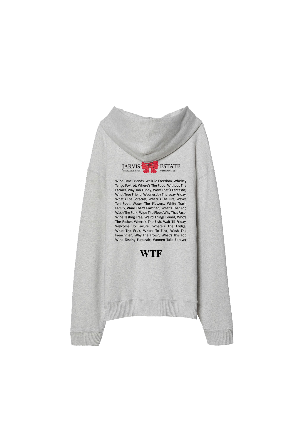 Comfy, classic hoodie featuring a kangaroo pocket, rib hem and sleeve cuff. Complete with exclusive Jarvis Estate WTF logo on the front and back. Perfect for crisp mornings and cooler summer nights. Designed in Australia.